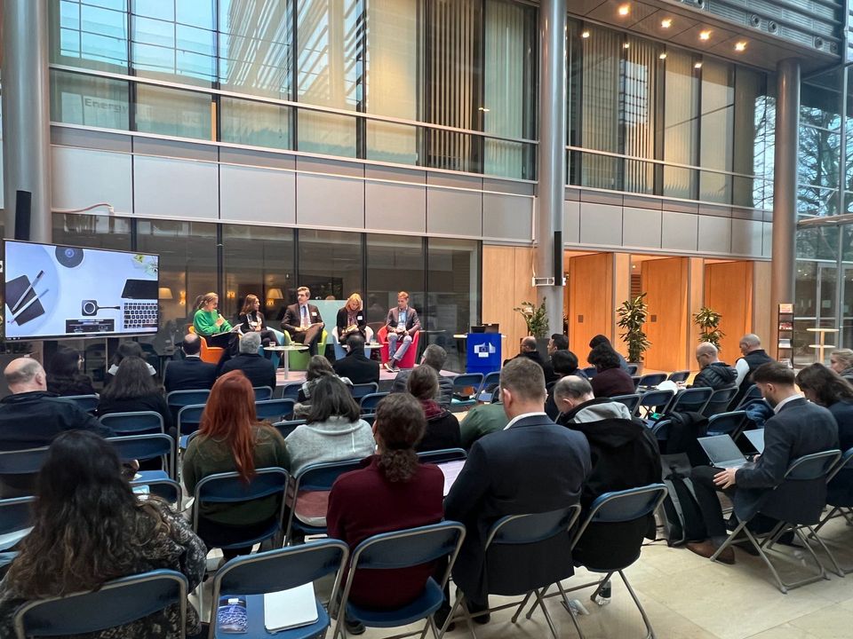 A lively and illuminating discussion session followed, with a panel consisting of Kirsty Reid, Director for Science Policy at the European Federation of Pharmaceutical Industry Associations (EFPIA), Ferenc Marofka, Policy Officer for the Health Industrial Ecosystem at DG GROW, and Momir Radulović for the regulatory perspective, being joined by Associate Professor Evelina Colacino at Université de Montpellier and coordinator of the IMPACTIVE project on behalf of the collective cluster projects. This session, moderated by Carmen Laplaza from DG R&I covered a lot of ground on green pharmaceutical practices and the challenges of balancing innovation whilst at the same time addressing environmental sustainability. In seeking to achieve the transition from inovative research into full commercial approaches, areas flagged where stakeholders can help break down the barrers included provision of data on (for example) current processes, guidance on which innovative technologies are actively considered for real-world application, LCA data for patent expiring APIs; finding ways to avoid the regulatory environment becoming a brake on progress in adopting innovation.